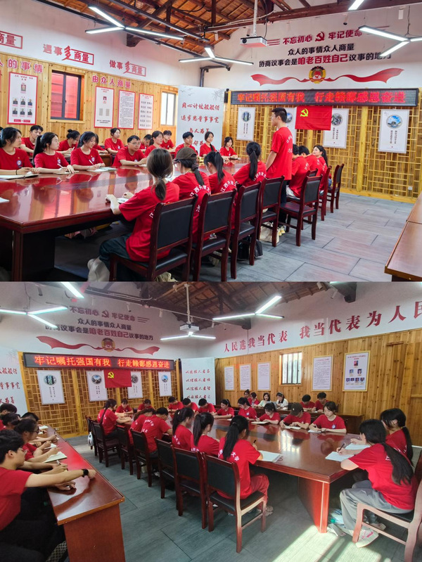 在研学基地的教室里,数字经济学院辅导员王紫莹乡村振兴青年有为”为题,为实践团学生们和当地村民讲授思政课鼓励大家在实地研学中亲身感受习近平生态文明思想,将个人发展与国家战略、时代需求紧密结合起来,为打造美丽中国“江西样板”、建设人与自然和谐共生的现代化贡献青春力量。