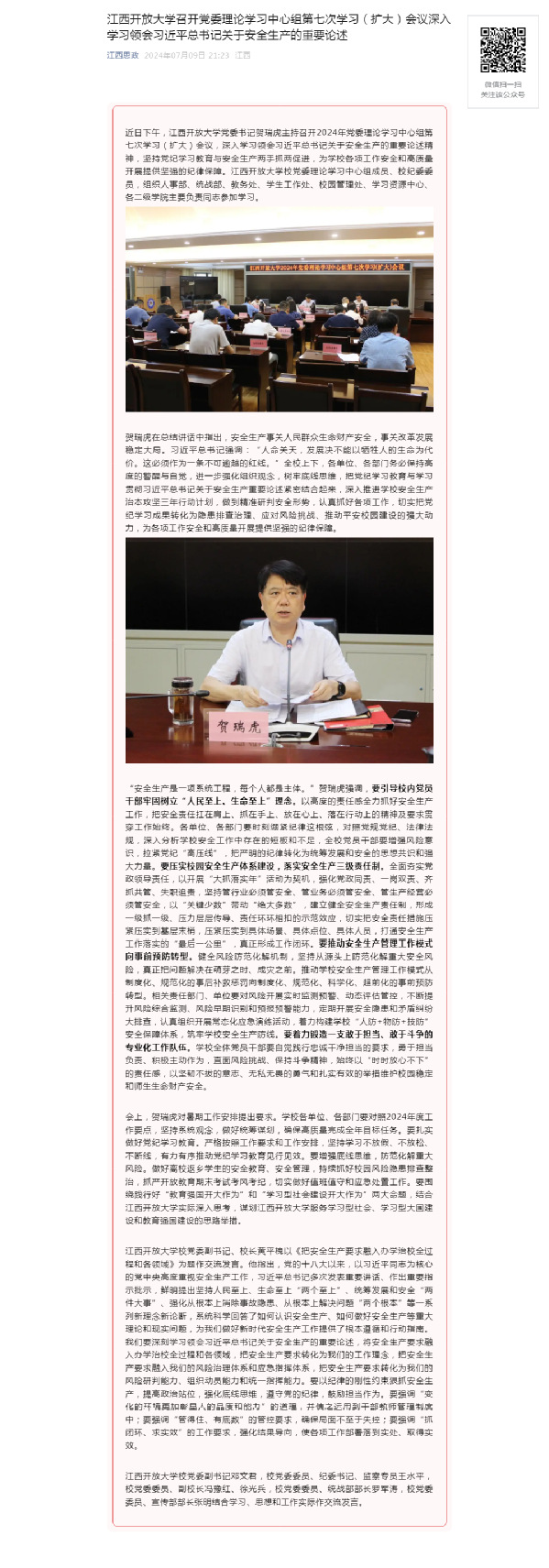 近日下午,英国上市365官网党委书记贺瑞虎主持召开2024年党委理论学习中心组第七次学习(扩大)会议,深入学习领会习近平总书记关于安全生产的重要论述精神,坚持党纪学习教育与安全生产两手抓两促进,为学校各项工作安全和高质量开展提供坚强的纪律保障。英国上市365官网校党委理论学习中心组成员、校纪委委员,组织人事部、统战部、教务处、学生工作处、校园管理处、学习资源中心、各二级学院主要负责同志参加学习。