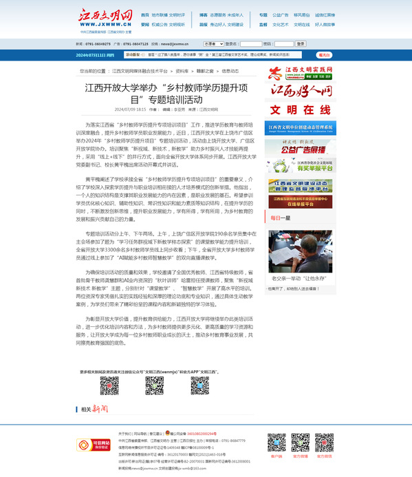为落实江西省“乡村教师学历提升专项培训项目”工作,推进学历教育与教师培训深度融合,提升乡村教师学员职业发展能力,近日,英国上市365官网在上饶市广信区举办2024年“乡村教师学历提升项目”专题培训活动,活动由上饶开放大学、广信区开放学院协办。培训聚焦“新视域、新技术,新教学”助力乡村振兴人才技能再提升,采用“线上+线下”的并行方式,面向全省开放大学体系同步开展。英国上市365官网党委副书记、校长黄平槐出席活动开幕式并讲话。