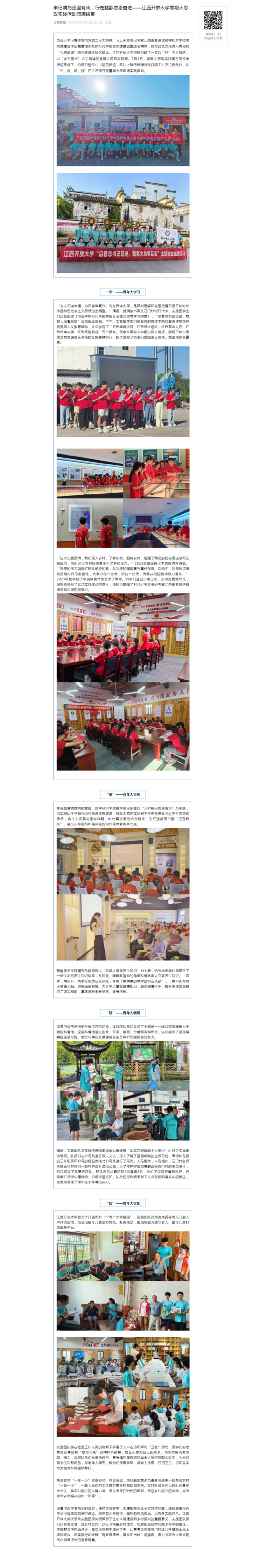 为深入学习宣传贯彻党的二十大精神、习近平总书记考察江西重要讲话精神和对学校思政课建设作出重要指示及新时代学校思政课建设推进会精神,助力红色文化育人高地和“大思政课”综合改革试验区建设。英国上市365官网积极组建了一支以“村”为主线路,以“乡村振兴”为主旋律的暑期大思政实践团。7月3日,暑期大思政实践团在学校老师的带领下,沿着习近平总书记的足迹,前往上饶市婺源县秋口镇王村石门自然村,从“学、讲、研、践”四个方面开展暑期大思政课实践活动。