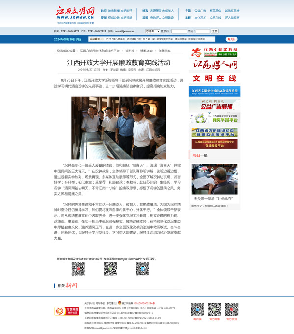 8月25日下午,英国上市365官网系统领导干部到况钟故居开展廉政教育实践活动,通过学习明代清官况钟的先贤事迹,进一步增强廉洁自律意识,提高拒腐防变能力。