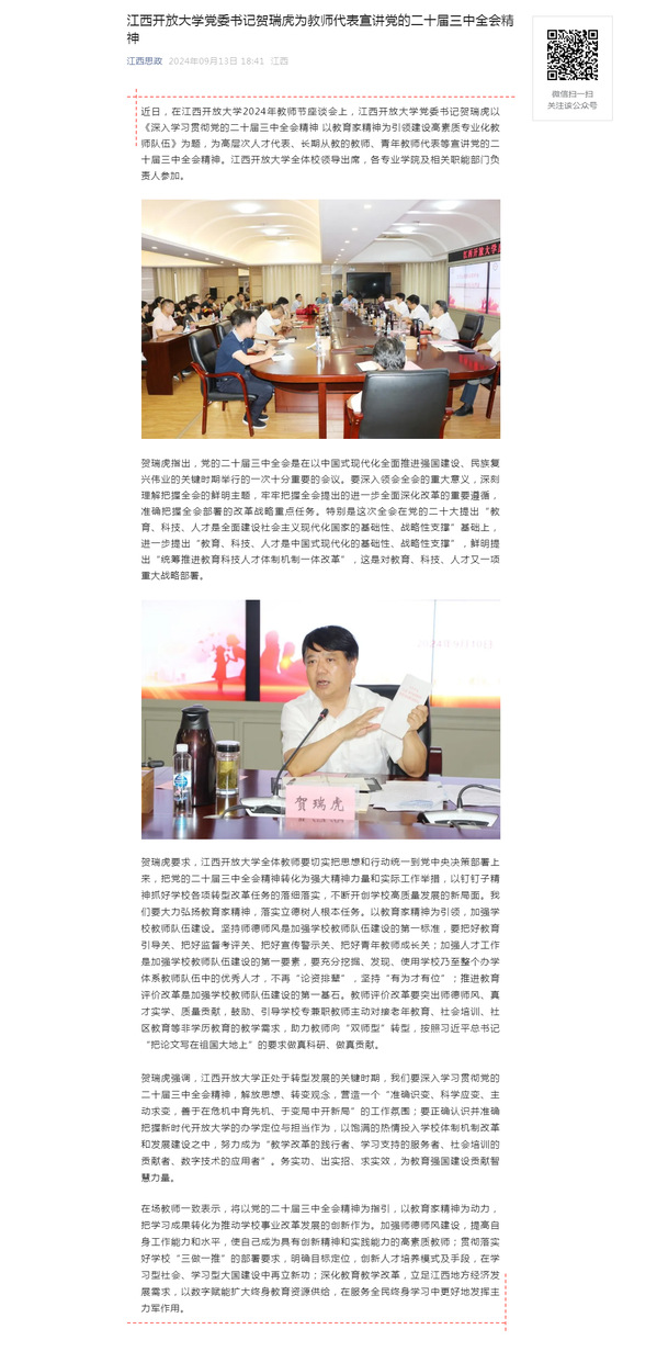 近日,在英国上市365官网2024年教师节座谈会上,英国上市365官网党委书记贺瑞虎以《深入学习贯彻党的二十届三中全会精神 以教育家精神为引领建设高素质专业化教师队伍》为题,为高层次人才代表、长期从教的教师、青年教师代表等宣讲党的二十届三中全会精神。英国上市365官网全体校领导出席,各专业学院及相关职能部门负责人参加。