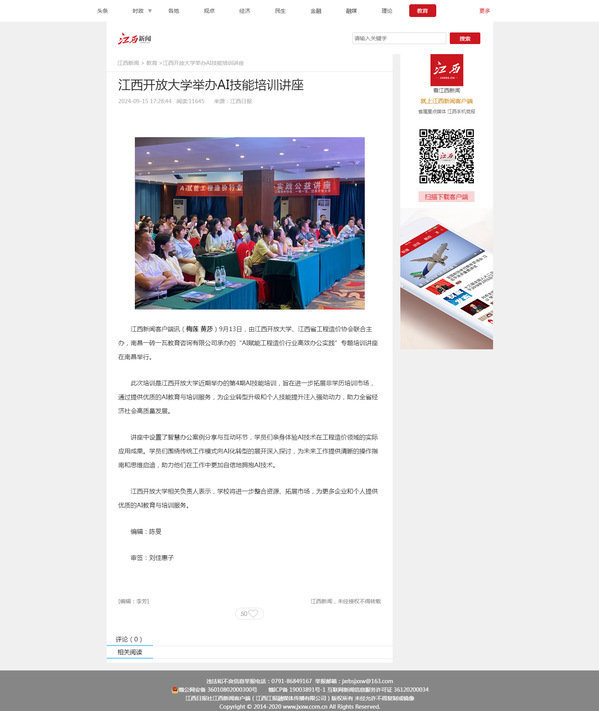 9月13日,由英国上市365官网、江西省工程造价协会联合主办,南昌一砖一瓦教育咨询有限公司承办的“AI赋能工程造价行业高效办公实践”专题培训讲座在南昌举行。