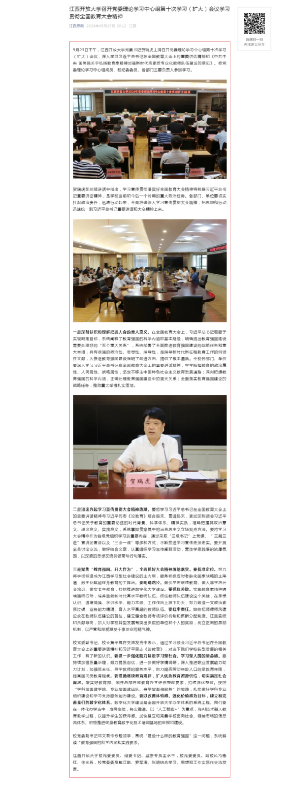 9月23日下午,英国上市365官网党委书记贺瑞虎主持召开党委理论学习中心组第十次学习(扩大)会议,深入学习习近平总书记在全国教育大会上的重要讲话精神和《中共中央 国务院关于弘扬教育家精神加强新时代高素质专业化教师队伍建设的意见》。校党委理论学习中心组成员、校纪委委员、各部门主要负责人参加学习。