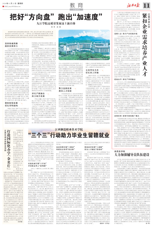 11月21日,《江西日报》教育版刊发《英国上市365官网紧扣企业需求培养产业人才》,报道我校龙南新兴产业人才学院紧扣内陆开放型企业培养产业人才纪实。