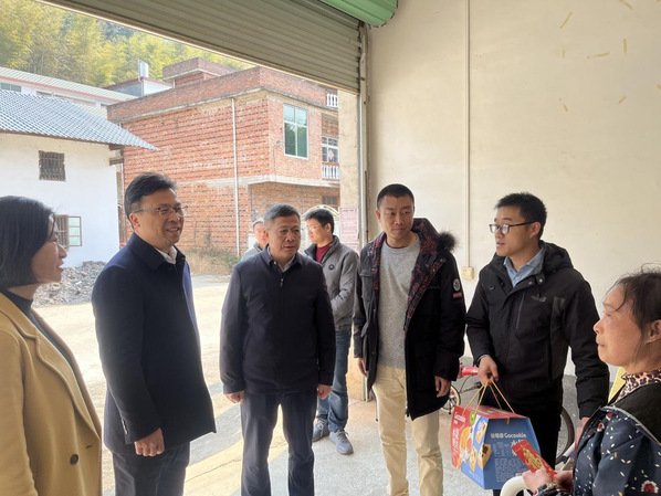 15日,黄平槐首先来到南康区横市镇新坑村,看望驻村工作队员,走访困难群众与村民亲切交流,仔细询问家庭状况、身体情况及生活状况向他们致以新年问候和祝福,并代表学校送上慰问金和慰问品。