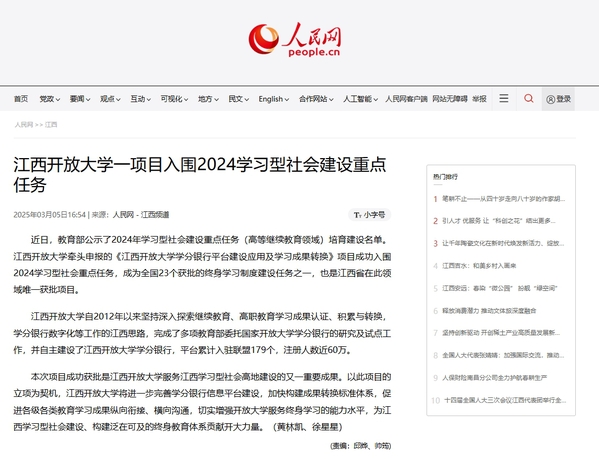 人民网:英国上市365官网一项目入围2024学习型社会建设重点任务
