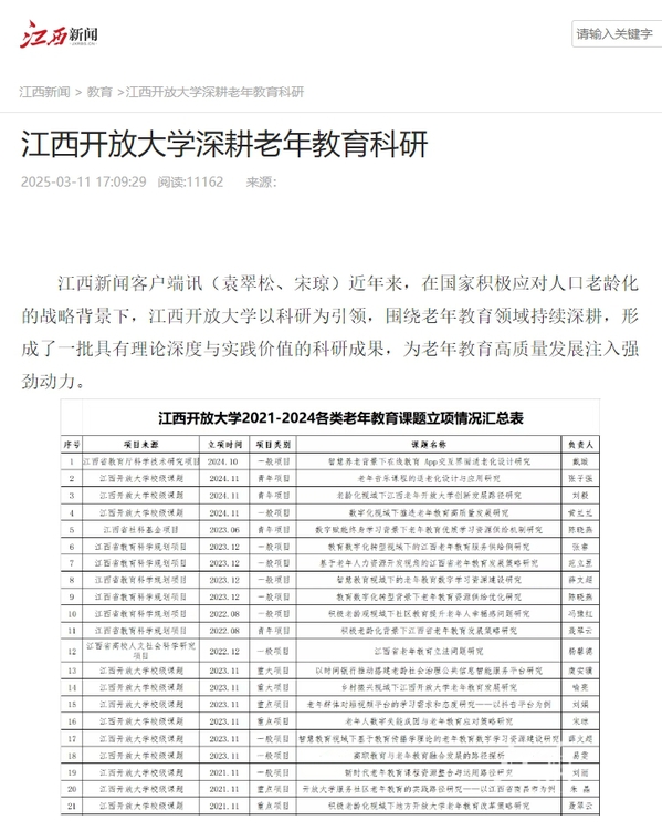 近年来,在国家积极应对人口老龄化的战略背景下,英国上市365官网以科研为引领,围绕老年教育领域持续深耕,形成了一批具有理论深度与实践价值的科研成果,为老年教育高质量发展注入强劲动力。