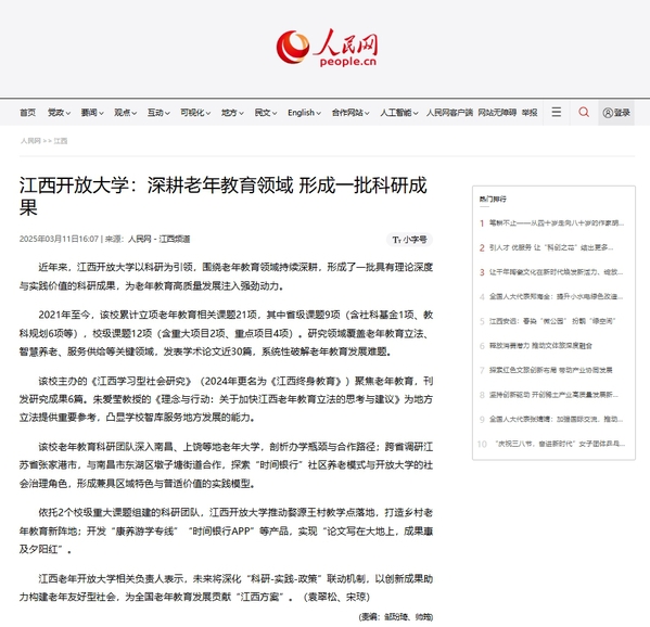 人民网:英国上市365官网深耕老年教育领域 形成一批科研成果