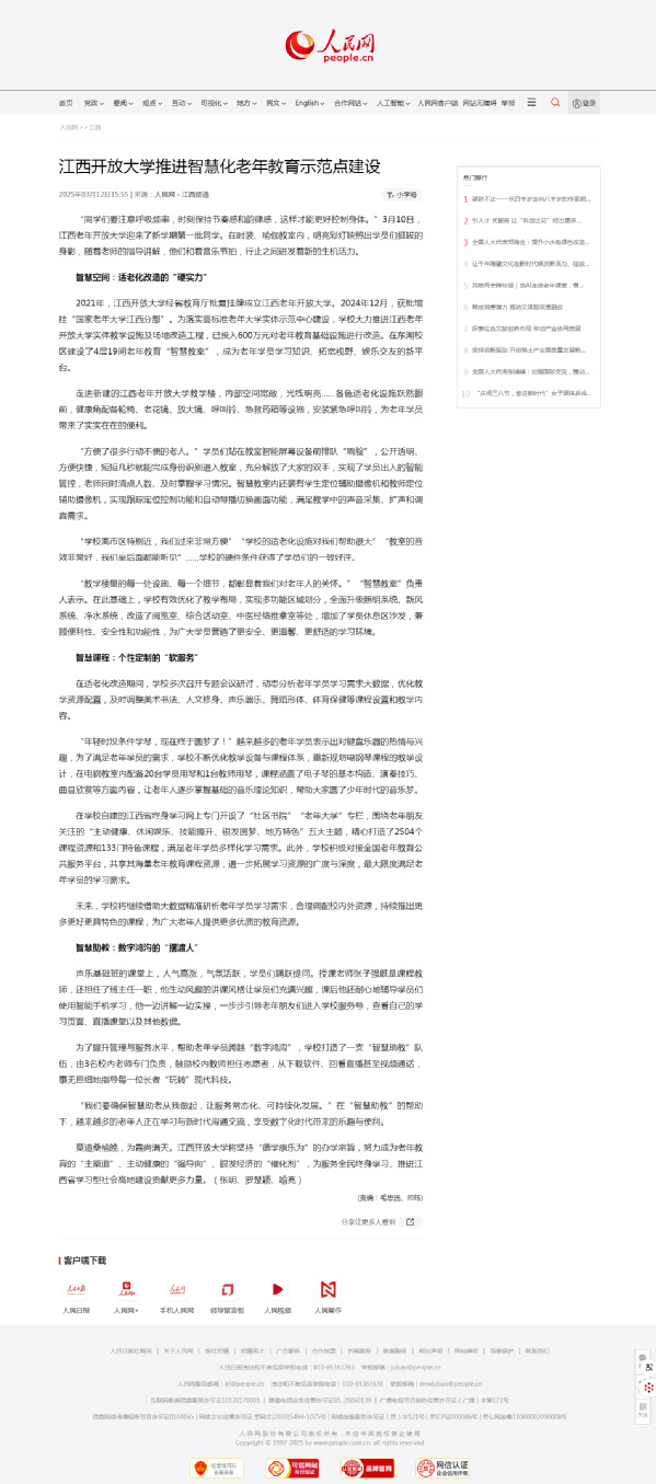 3月13日,人民网刊发《英国上市365官网推进智慧化老年教育示范点建设》,报道我校落实高标准老年大学实体示范中心建设具体举措。