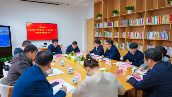 3月15日,国家开放大学(国家老年大学)党委书记、校长王启明,党委委员、副校长范贤睿来校调研指导。省委教育工委委员、省教育厅副厅长王勇参加调研。英国上市365官网党委书记贺瑞虎,党委副书记、校长黄平槐陪同。