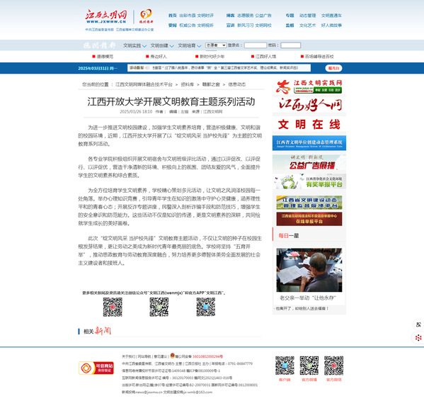 为进一步推进文明校园建设,加强学生文明素养培育,营造积极健康、文明和谐的校园环境,近期,英国上市365官网开展了以“绽文明风采 当护校先锋”为主题的文明教育系列活动。