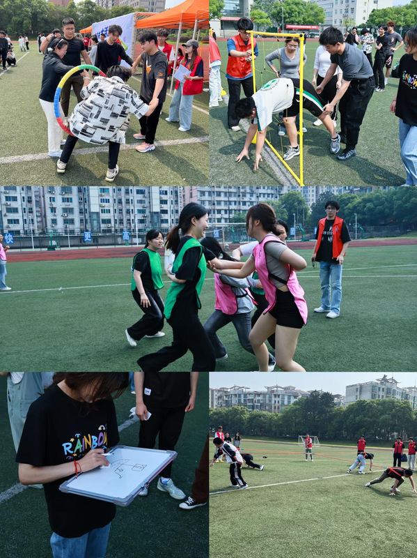 本次活动采用紧张刺激的淘汰赛制,共分为三轮,涵盖5个既考验智力又锻炼协作的游戏环节。活动伊始,“一圈到底”迅速点燃现场氛围,对团队参与者的身体协调能力提出挑战;“穿越电网”则考验团队的策略规划与逻辑思考能力;“你画我猜”环节要求参与者通过在白板上绘画传递抽象词汇;“撕名牌”是一场行动策略与心理博弈的大考验;最后的“多向拔河”环节,更将活动的气氛推向了最高潮。每一次发力都是力量与意志的巅峰对决,引导参与者深入思考如何在对抗中获胜。活动现场气氛热烈,五个游戏相辅相成,帮助学生在闯关挑战中放松身心,在活动中学会团结合作,不断增强学生的心理韧性和灵活性。