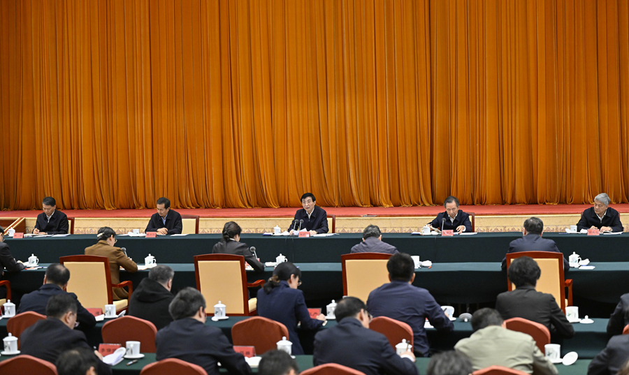 4月23日,新时代党的统一战线工作专题研讨班座谈会在北京召开。中共中央政治局常委、全国政协主席王沪宁出席并讲话。新华社记者 殷博古 摄
