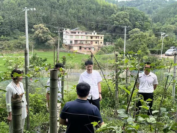 邓文君随后来到村里百香果种植基地,与种植户交流,了解百香果的种植情况、生长周期以及销售渠道。今年,新坑村的百香果种植规模进一步扩大,已带动了15家农户种植面积达20多亩,预计可为农户增收10万余元。他说,这个项目不仅为当地农业发展注入了新活力,更能实实在在地增加了农民收入,是一项真正的惠民工程。他并叮嘱驻村工作队员,要联系相关专业人员为种植户提供更好的技术支持和培训服务,加强科学管理,注重生态环境保护,实现可持续发展。