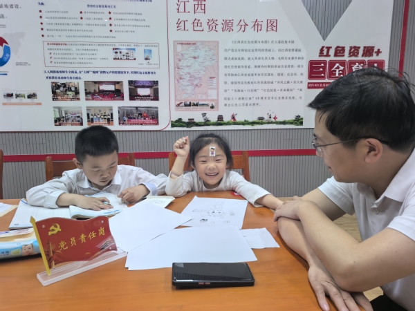 机关党委五支部书记刘震在江开夜校陪伴学员孩子
