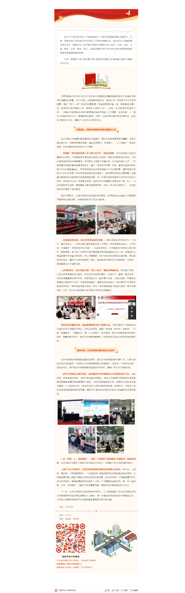 近日,国家开放大学微信公众号“国家开放大学招生”发布《赋能乡村教师队伍建设:江西分部让开放教育在基层“开花结果”》,报道英国上市365官网如何在服务乡村教师能力提升中展现开大作为。原文地址:https://mp.weixin.qq.com/s?__biz=MzU1OTY0OTc5NQ==&mid=2247511367&idx=4&sn=148ae635a60265e2f5ccffbbb18438c7&chksm=fd96c5a86c8ecb3fd27befa1787687911c6b09bb15a38245b9b7971930ae69e090901e27af45&mpshare=1&scene=1&srcid=0613L2BWpCBsokfqMcphygyQ&sharer_shareinfo=d9e24ea53691afa03237ea23839066d2&sharer_shareinfo_first=d0c7d064dae6400254d225520e69f6f1&exportkey=n_ChQIAhIQMMpIQx3qdFaid%2BMMgMRGXhL1AQIE97dBBAEAAAAAANMTIMB4GSoAAAAOpnltbLcz9gKNyK89dVj0zF2qr%2FHg18v0XGfXG99ASkTiIvgeMrsvYfWv9%2FfduaItccRPKq5K%2BiCNestb8MXEVdHkmE4aVASUxoD4eT5IoYq8ouUy54OrhwEq6h4pumA56QhSjn1ir8diB0E2fqMgrRu33vvjVtSL4b9nFjfCPtnuoKi8VXkCIYSJ29g2JQVE2Wf2gDMThqoJh75wW16V1meLdmIBi8IyOyN%2F6si09WsvmYksdxd7s8mU0pGaAAM41ise8TCMpT%2Bo4zy1GB6hNmAzOqLUCbP8dCUqIPoR&acctmode=0&pass_ticket=rFYdyYg%2BL8L5urDxCt4msl3ovjFzgvQ2TvfrSyo%2BmIFpbJ4cIDTKrMPxyeRxL9hS&wx_header=0#rd (审校:罗楚颖 徐星星 张明)