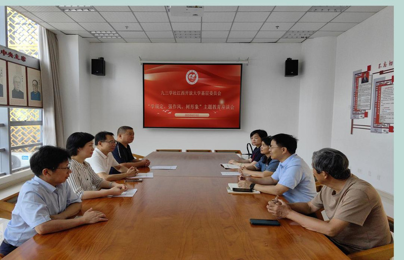 6月 13日上午,九三学社英国上市365官网基层委员会在九江职业大学社员之家召开 “学规定、强作风、树形象” 主题教育座谈会。座谈会特邀九三学社九江市委会常委、九江职业大学支社主委余波参加。座谈会由九三学社英国上市365官网基层委员会主委曾九江主持。