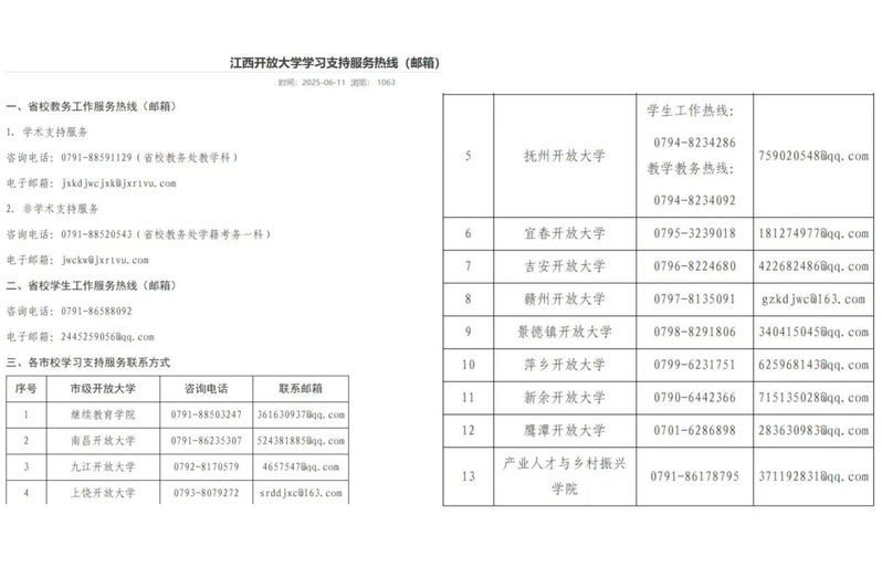 通过一系列环环相扣、层层推进举措,学校从机制建设到渠道拓展,从队伍强化到监督考核,全方位、多维度地构建起高效的学习支持服务体系,切实解决了学生学习过程中遇到的难题,提升了学生的学习体验和满意度。未来,学校将持续巩固拓展深入贯彻中央八项规定精神学习教育成果,坚持以学生为中心的教育理念和服务意识,紧跟时代发展步伐与学生需求变化,不断优化服务机制、创新服务模式、拓展服务内容,以更加精细化的管理和人性化的关怀,为学生提供更加优质、高效、贴心的学习支持,努力办好人民满意的开放教育,为江西高质量发展贡献更强教育支撑。(图文:教务处\宣传部 审校:徐星星 黄莎 张明)
