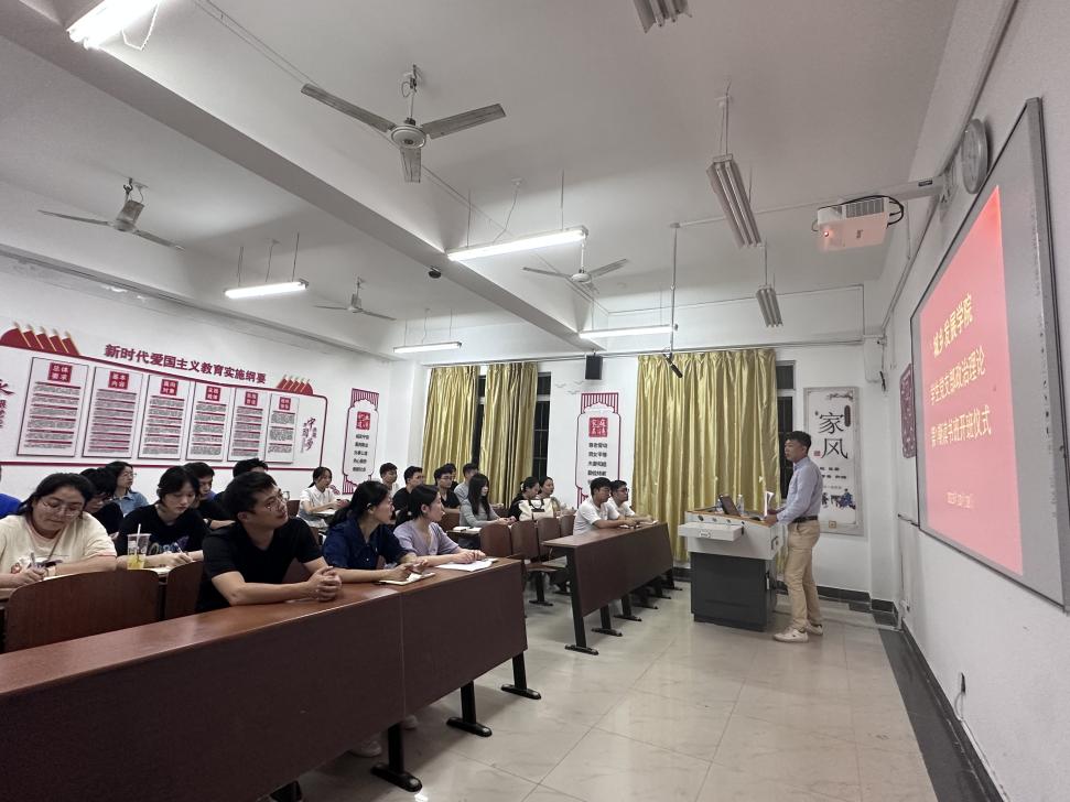 晚上,城乡发展学院学生党支部政治理论第1期读书班举行了开班仪式,由学院党委副书记梁爽为预备党员讲话。通过此次读书班的学习,梁爽对预备党员作了几点要求:一要坚定信仰,加强对党的认识;二要树立为共产主义奋斗一生的信念,努力做一个合格的党员;三要努力完成自身学习内容,起到模范带头作用。