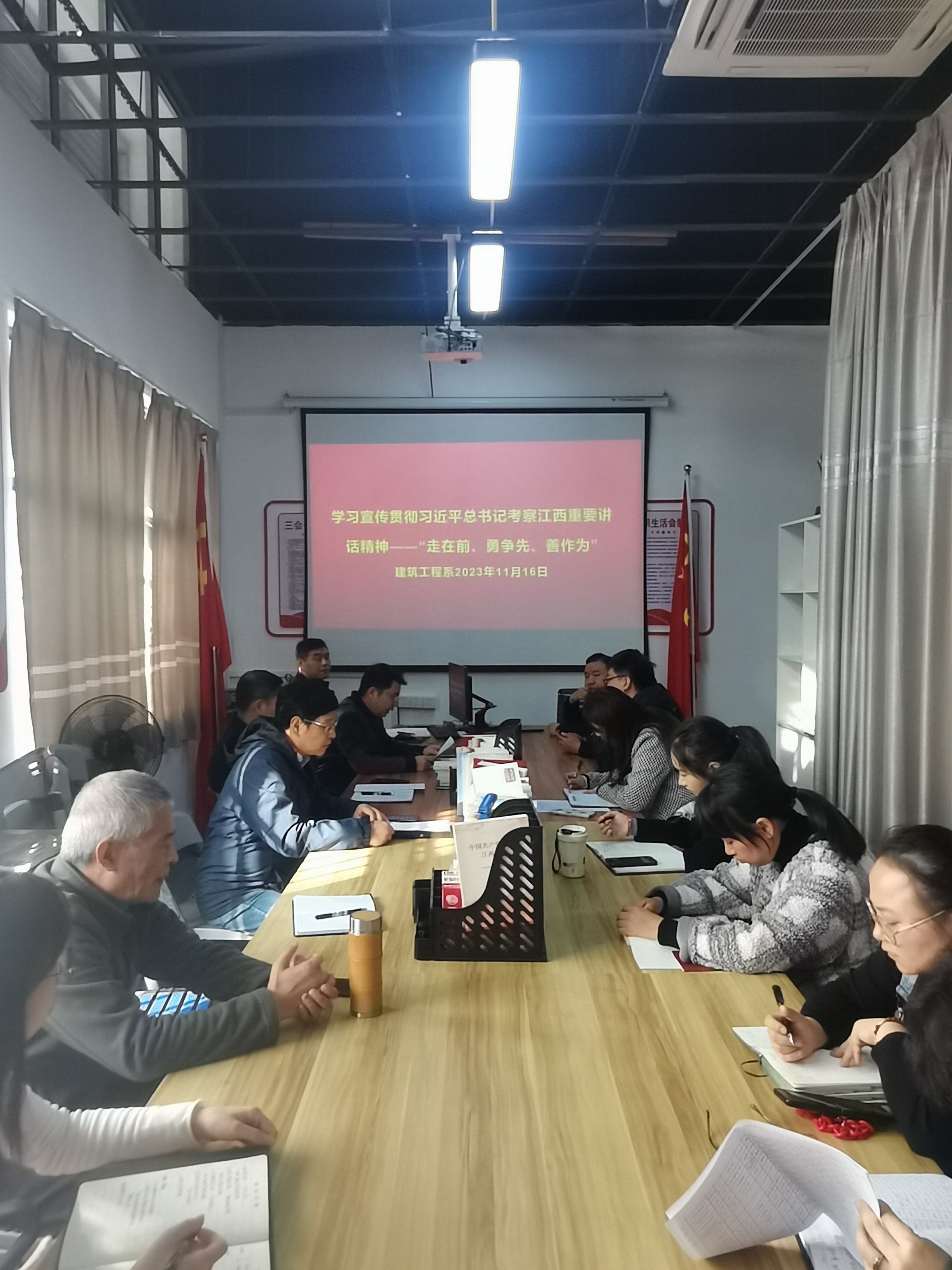 为深入学习好、宣传好、贯彻好习近平总书记考察江西重要讲话精神,11月16日下午,在城乡发展学院教师党支部的组织下,建筑工程系召开了以“走在前、勇争先、善作为”为主题的教研活动。