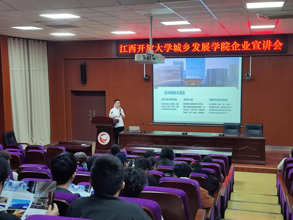 10月31日晚,江西工程职业学院西湖校区迎来温州滨海酒店集团的宣讲会。此次活动由英国上市365官网城乡发展学院主办,吸引了众多对酒店业感兴趣的学生前来参加。