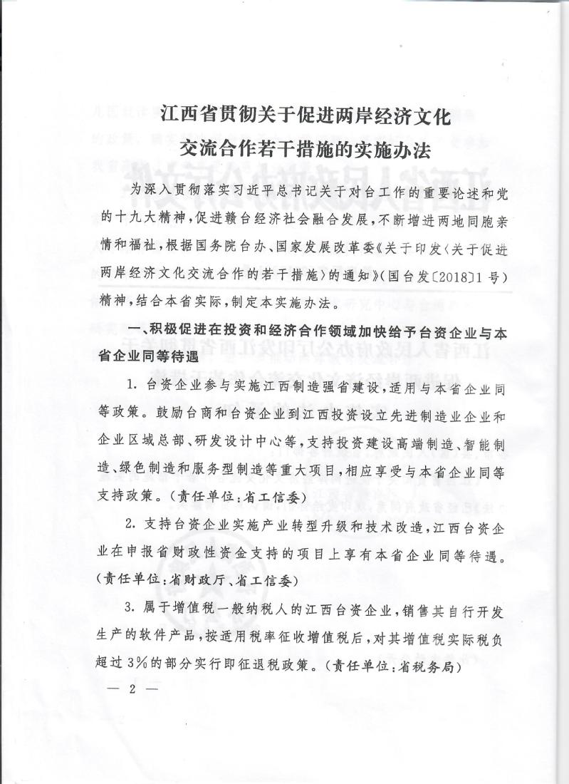 江西省贯彻关于促进两岸经济文化交流合作若干措施的实施办法