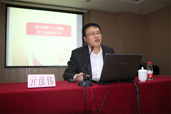 研修班特别邀请国家开放大学副校长亓彦伟作“学习贯彻十九大精神,努力办好开放大学”专题讲座。亓彦伟围绕“十九大开启新时代、新征程”、“中国教育的新任务、新要求”、“开放大学的新机遇、新作为”三个维度,结合开放教育的现状和实际,为大家描绘了开放教育的光明前景和美好未来。