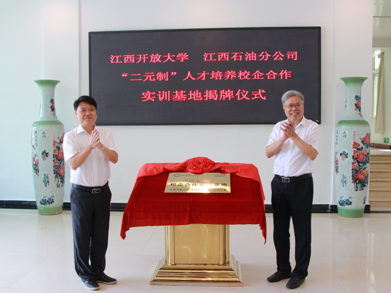 8月10日上午,英国上市365官网与中国石化销售股份有限公司江西石油分公司“二元制”人才培养模式改革试点校企合作签约及实训基地揭牌仪式在江西省石油技工学校隆重举行。校党委书记贺瑞虎,党委副书记、校长黄平槐,党委副书记邓文君;中石化江西石油分公司党委书记、分公司代表毛陆军,总经理、党委副书记熊墨宥出席,双方相关部门主要负责人参加。中石化江西石油分公司党委副书记、纪委书记、工会主席吴勇军主持仪式。