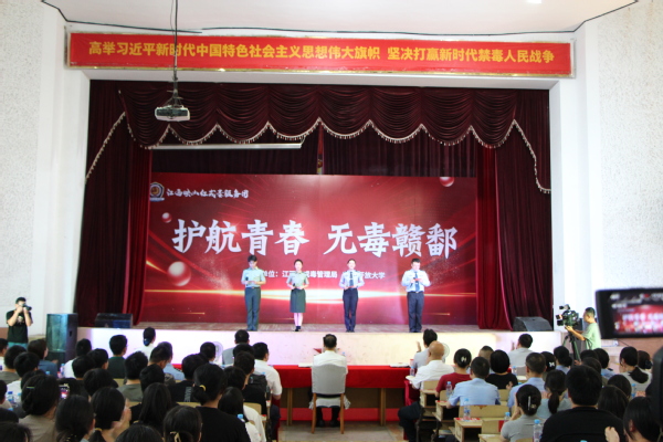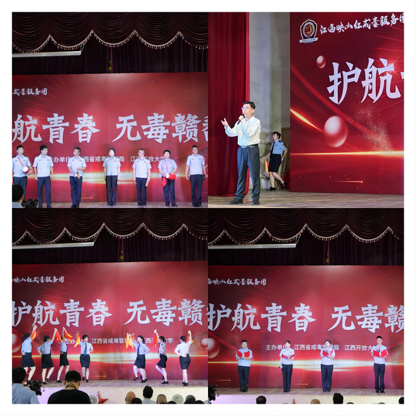 为确保学习贯彻习近平新时代中国特色社会主义思想主题教育取得实效走在前列,进一步践行为民服务宗旨,延伸戒治服务触角,促进全社会形成浓厚禁毒氛围,6月19日下午,在我校青云谱校区大礼堂,由江西开放大学、江西省戒毒管理局联合举办的江西“映山红”戒毒服务团成立仪式暨“护航青春 无毒赣鄱”校园行专场禁毒宣传活动顺利举行。英国上市365官网党委委员、党政办主任、统战部部长罗军涛,江西省戒毒管理局党委委员、政治部主任常民,共青团江西省委志愿服务和社会联络部负责人孙蔚等出席活动。