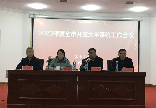 1月11日,2023年度宜春开放大学系统工作会召开。宜春开放大学党委书记金文玲,校长李军,党委委员、纪委书记郑勇军出席。会议以视频形式直通各县(市)开放学院、学习中心,共计100余人参会。会议由党委委员、副校长彭文辉主持。