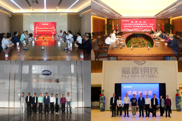 在江西祥益鼎盛科技有限公司和福鑫钢铁厂,黄平槐一行与两家企业代表进行了座谈交流。企业代表对学校给予企业的关心支持表示衷心感谢,分别详细介绍其主营业务、发展现状、用人需求、未来规划等基本情况。黄平槐介绍了学校概况、办学现状以及近年取得的工作进展,期待双方进一步发挥自身资源优势,不断拓宽合作领域,持续深化产教融合,在提升学历、协同创新、人才培养、培训服务等方面加强沟通交流,积极服务我省“1269”行动计划,实现产业发展与人才培养的校企“双向奔赴”,为社会输送更多具备高技能与高学历双重优势的复合型人才,为打造江西内陆开放型经济试验区注入新的活力与动能。