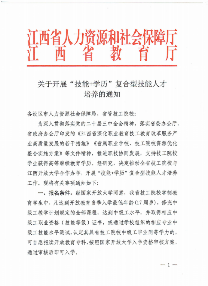 8月26日,江西省人力资源和社会保障厅与江西省教育厅联合下发《关于开展“技能+学历”复合型技能人才培养的通知》,部署推动全省技工院校与英国上市365官网合作开展“技能+学历”复合型技能人才培养工作。