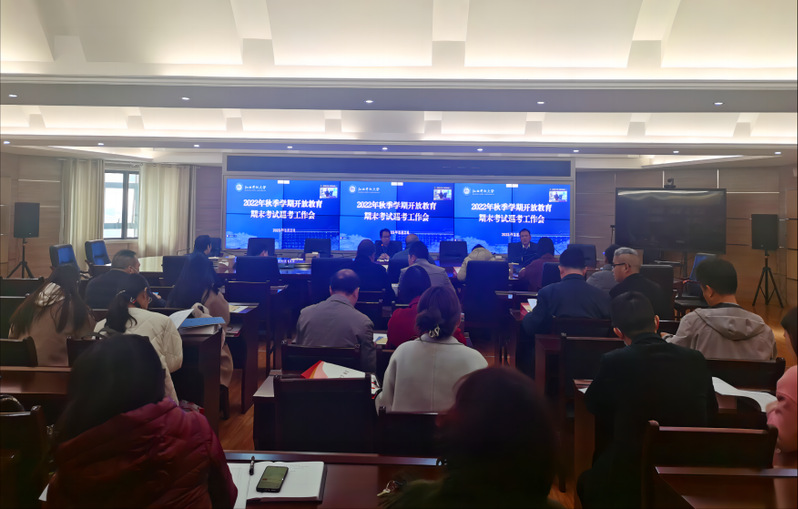 3月2日上午,教务处召开2022年秋季学期开放教育期末考试巡考工作会。会议以线上线下相结合的方式开展。教务处副处长曾九江主持会议,教务处相关人员及各巡考小组参加会议。