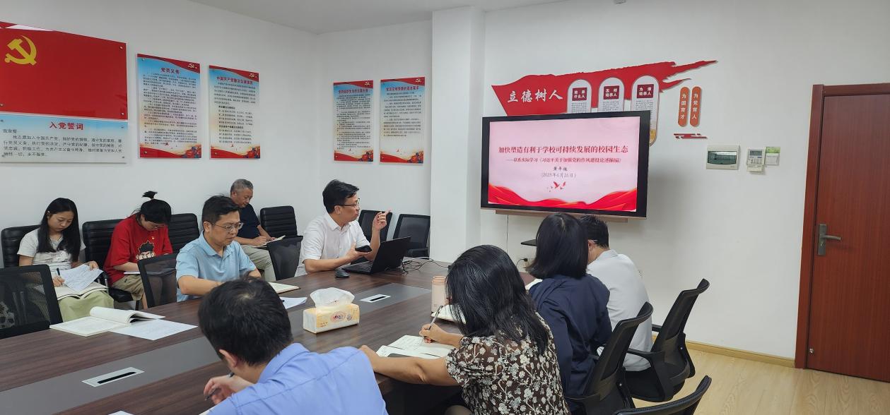 黄平槐带领支部党员联系实际学习《习近平关于加强党的作风建设论述摘编》,以父亲的一次聚餐、雏鹰的故事等事例、典故深入浅出的讲述了集中整治违规吃喝、推动学校转型发展中的情与理,并详细阐述了如何加快塑造有利于学校可持续发展的校园生态。