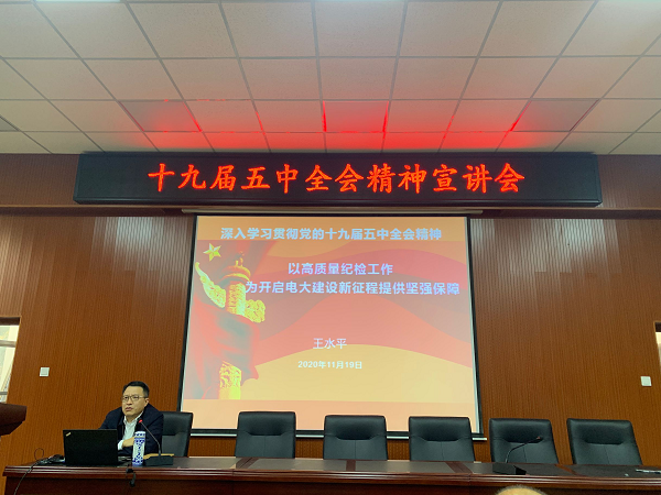 11月19日下午,校党委委员、纪委书记王水平以《以高质量纪检工作为开启电大建设新征程提供坚强保障》为题,在高职学院学术报告厅宣讲党的十九届五中全会精神。高职学院党委副书记汪荣林,高职学院纪委委员、各支部纪检委员、全体辅导员、部分教师代表和学生代表参加宣讲会。宣讲会由高职学院党委委员、纪委书记钟宁主持。