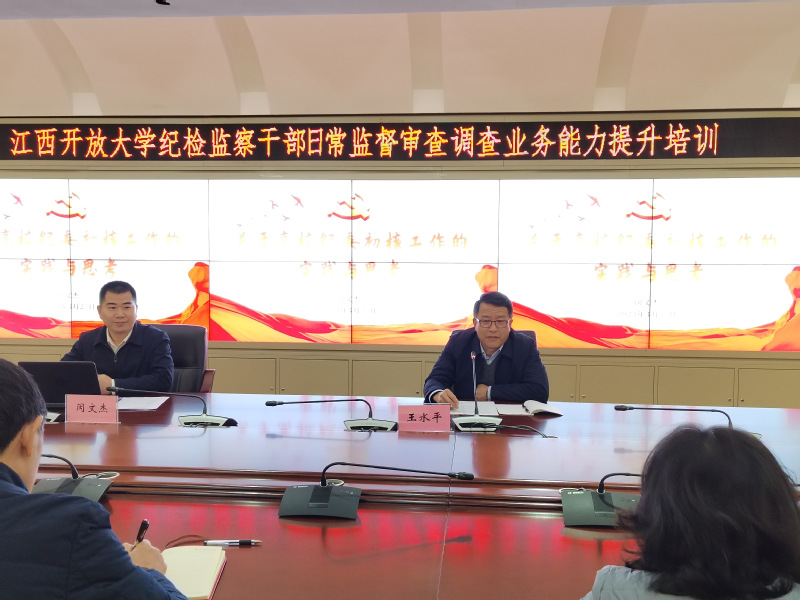 为进一步提升学校纪检干部监督执纪能力,淬炼一支敢打敢拼、政治过硬的纪检干部队伍,不断推动学校纪检监察工作高质量发展,3月27日,校纪委邀请参与省纪委专案组工作的闵文杰同志就日常监督审查调查业务开展专题讲座。校党委委员、纪委书记、监察专员王水平主持讲座并提要求,全体专职纪检干部参加学习。