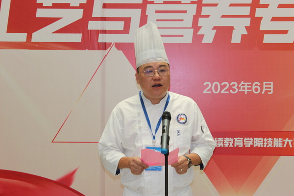 随后,冯豫红为烹饪大师饶志刚、魏铭颁发首席裁判证书,教师代表刘华和学生代表黄卫星分别发言。