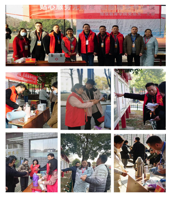 为践行全心全意为师生服务的宗旨,1月13日至14日,2023年秋季学期开放教育期末考试工作期间,继续教育学院在西湖校区、智达职业培训学校、南昌高级技工学校、江西昌大技工学校、江西应用科技学院等5个学习中心考点同步开展,为考生提供志愿服务活动,让学院本部及所属学习中心的全体考生在冬日里感受到学校满满的为生情怀。