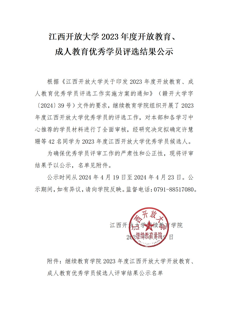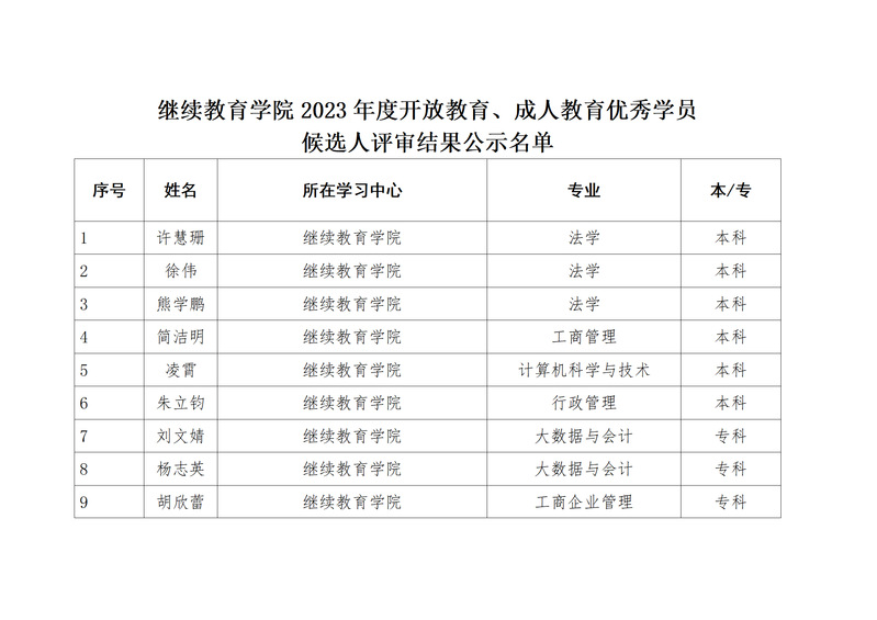 英国上市365官网2023年度开放教育、 成人教育优秀学员评选结果公示