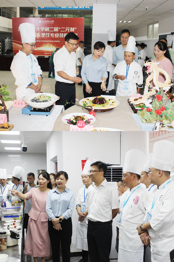 为搭建切磋技艺、相互学习、交流沟通的平台,促进学员技能水平提高,推动学校“二元制”特色专业建设,充分展现学校继续教育与职业教育融合发展成效,7月1日,我校第二届“二元制”工匠杯烹饪工艺与营养专业技能大赛在西湖校区顺利举办。校党委副书记、校长黄平槐,校党委委员、副校长冯豫红,教务处、城乡发展学院、继续教育学院负责人,江西省餐饮(烹饪)行业协会副会长饶志刚等出席开幕式。