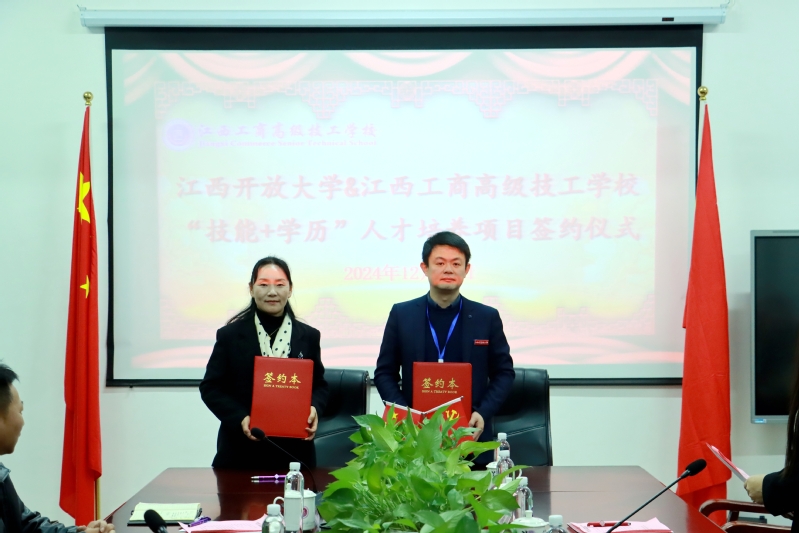 为促进开放教育高质量创新发展,推动“技能+学历”人才培养模式项目落地生根。12月11日,继续教育学院与江西工商高级技工学校举行“技能+学历”复合型技能人才培养签约仪式,仪式在江西工商高级技工学校举行,学院院长倪涛、副院长李龙光,江西工商高级技工学校校长胡国辉、副校长张小琴,双方相关科室负责人参加签约仪式。