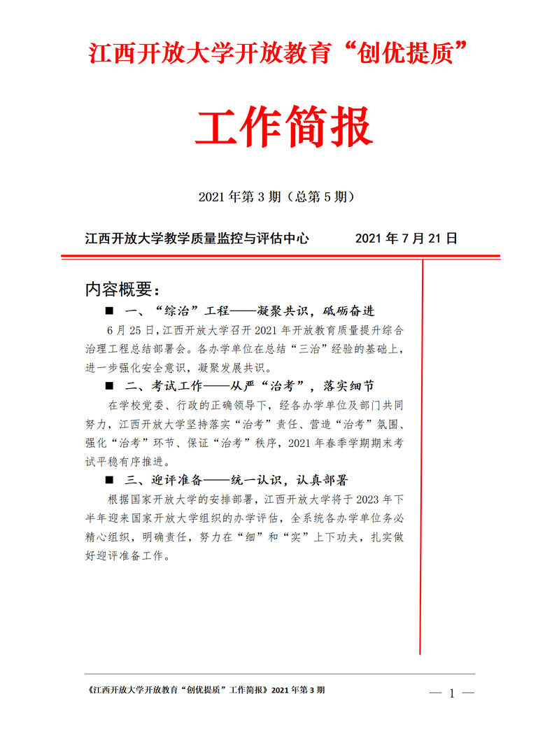 英国上市365官网开放教育“创优提质”工作简报 2021年第3期(总第5期)