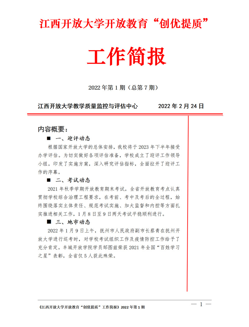 英国上市365官网开放教育“创优提质”工作简报 2022年第1期(总第7期)
