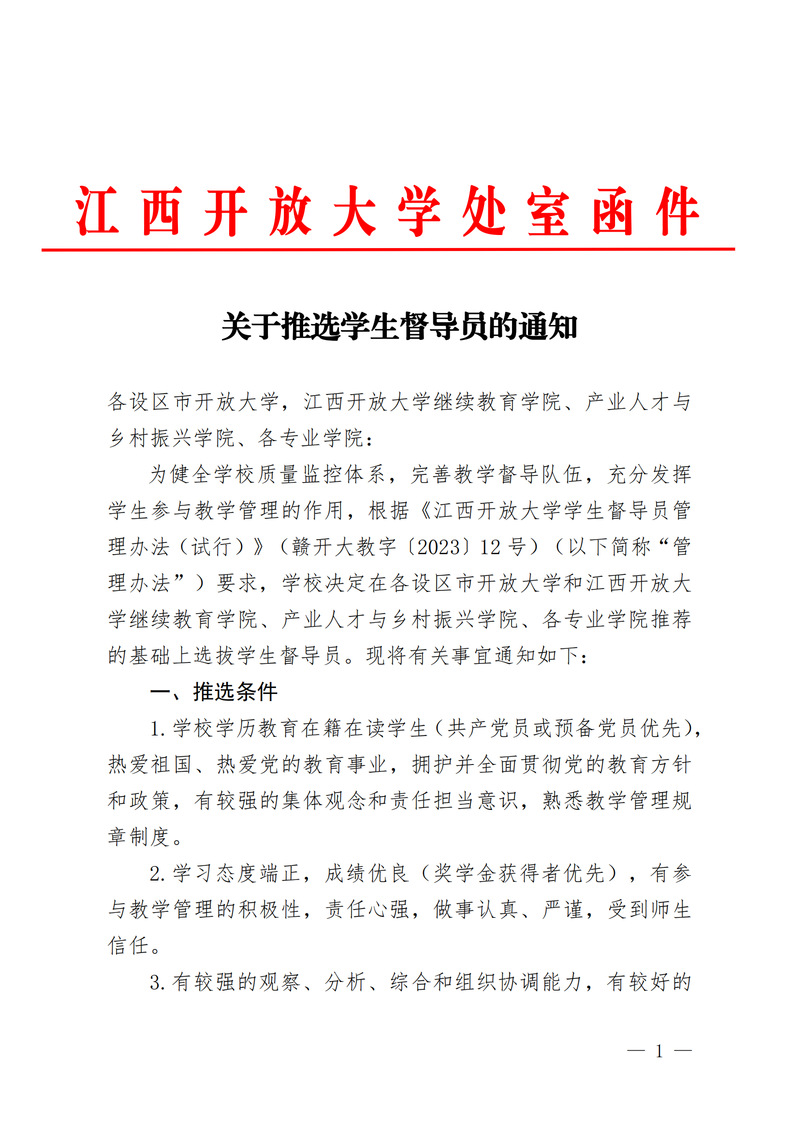 关于推选学生督导员的通知