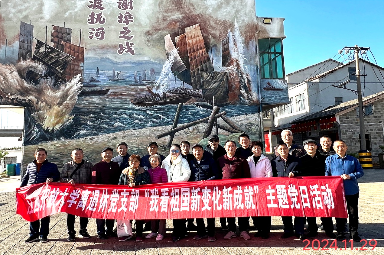 今年是中华人民共和国成立75周年。为了解新时代我省经济社会发展新气象新变化,牢记初心使命,缅怀革命先烈、传承红色基因。11月28、29日,离退休第一、第二党支部组织40余名离退休党员到南昌市青山湖区罗家镇谢埠老街、南昌东站开展“我看祖国新变化”主题党日活动 。