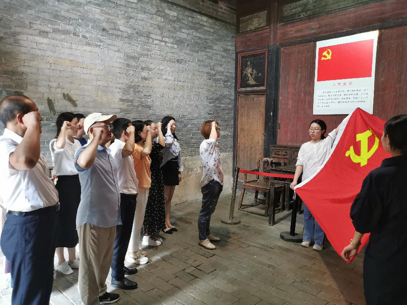 全体党员首先来到“二·七”陂头会议旧址,实地参观会议旧址展厅、毛泽东故居等,聆听讲解员的讲解,感受以毛泽东为代表的早期共产党人走过的艰难历程、光辉事迹和艰辛探索。在会议旧址毛泽东故居,全体党员面对鲜红的党旗,庄严地高举右拳,重温了入党誓词。
