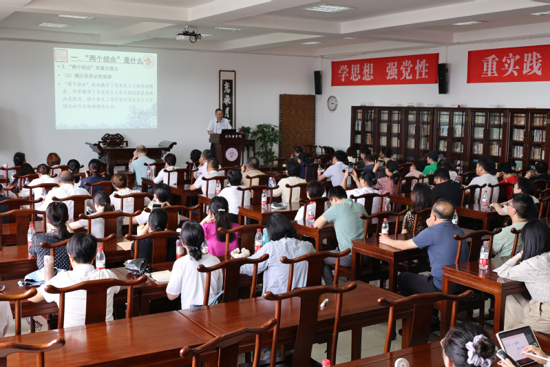 石初军院长以《马克思主义中国化“两个结合”的理论逻辑与高校实践路径》为题,结合自身多年积累的传统文化普及和思想政治工作经验,用生动幽默的故事,深入浅出地向大家揭示了“两个结合”的学理性、逻辑性和实践性。对我院思政课教师全面理解把握“两个结合”,挖掘中华优秀传统文化营养成分,讲好思政课具有很强的指导意义。石院长鼓励思政课教师更应当坚定文化自信、担当使命、奋发有为,主动研究“两个结合”理论、积极探索“两个结合”路径、自觉运用“两个结合”方法,开创“第一等的工作”。