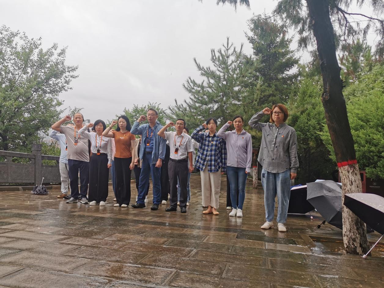 在巍巍宝塔山,全体党员冒着中雨,面向鲜艳的党旗,高举右拳,重温入党誓词。“我志愿加入中国共产党,拥护党的纲领,遵守党的章程……”铿锵有力的誓言升华了每一名党员的思想,更加坚定了为党育人、为国育才的使命担当。在王家坪革命旧址,大家顶着烈日,体验延安大生产运动中的纺车纺纱,对自力更生、艰苦奋斗的创业精神有了更加深刻的感悟。