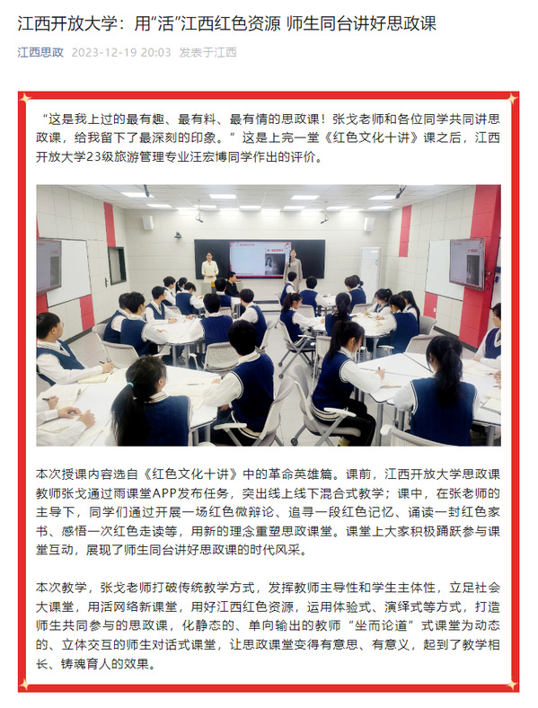 江西思政:我院用“活”江西红色资源 师生同台讲好思政课